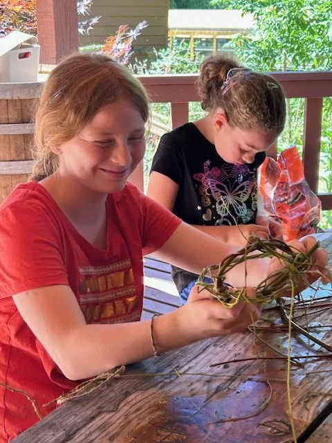 Art from the farm and forest!  This camp is all about creating art from the natural world, and using the beauty of the farm and forest to guide our explorations.  We will make handmade paints, mine clay from the creek bed, felt wool from the llamas, press flowers, make baskets, and more!  No art experience needed, just an excitement to learn new skills and make the world a joy-filled rainbow!